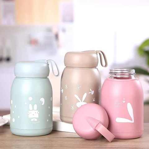 Botella de agua de doble cristal con diseño de logotipo de conejo bonito y creativo al por mayor, recipiente para beber para actividades en el hogar y la Oficina